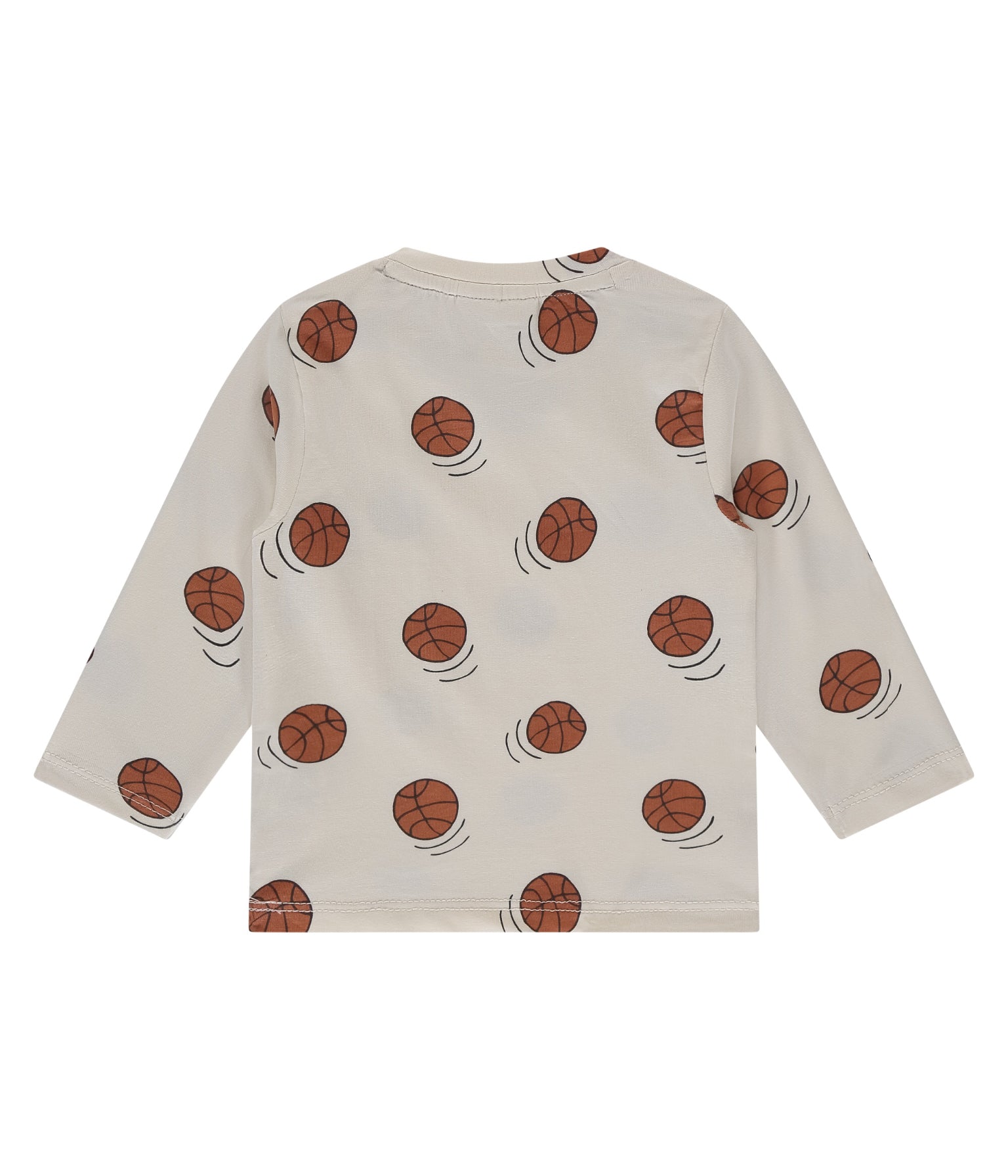 Off white sporty tee printed with basketball print for your sports loving little one! Allover basketball print with crew neckline & full length sleeves in a pullover design. Made from BCI Cotton in a ultra soft & stretchy fabric. Mix & match with the coordinating collection!