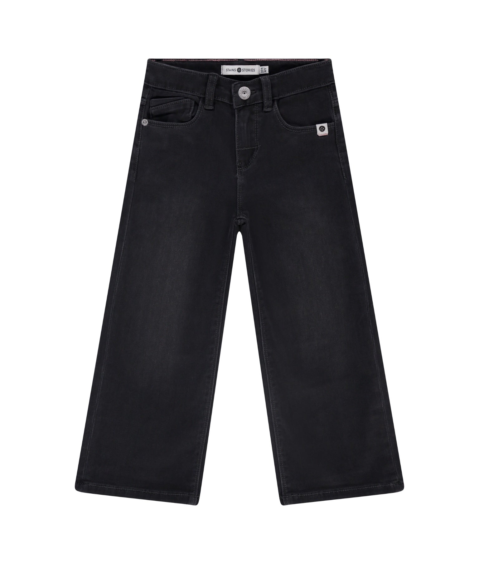 The denim you need to know about, Babyface Stains & Stories! On trend wide leg denim with the softness you will remember and come back to over & over again! Dark charcoal grey denim with coordinating stitch detail allows you to wear these dressy or casual in a pinch. Classic five pocket styling with belt loops, adjustable waist, hidden hook & eye closure & zip fly.